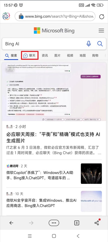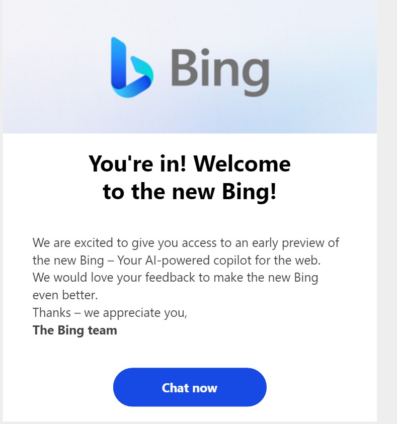• 需要申请 newbing 的体验权限 申请通过后会接收到邮件